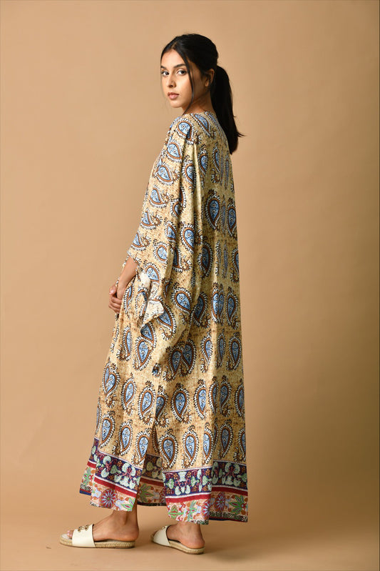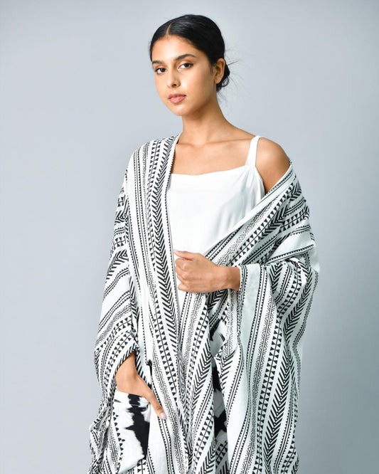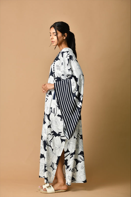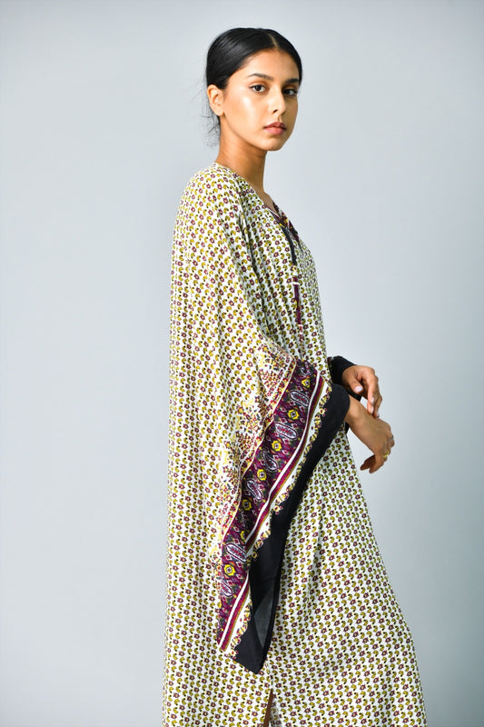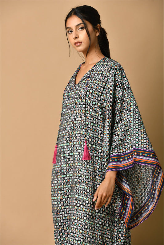Sold outBlack kaftan, ikkat on the back